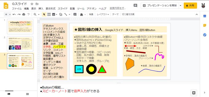 ●Googleスライドの図形/線の挿入を行い、操作手順を簡単にまとめました …1)C/K.x1…#鳥取 #コロナ #Google #スライド pic.twitter.com/O998Sb595I