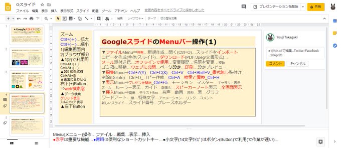 ●Googleスライドのファイル、編集、表示、挿入メニュー(Menu)操作項目を簡単にまとめました …オフライン編集が可能でオンラインを再利用するには再読み込みします …1)C/K.x1…#鳥取 #コロナ #Google #スライド pic.twitter.com/hIpE5gSwrr