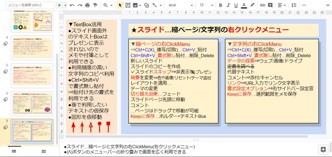 ●Googleスライド…縮ページと文字列の右ClickMenu(右クリックメニュー)の操作項目を簡単にまとめました …(Λ)ボタンのメニューバーの折り畳みで画面を広く利用できます …1)V/K.x1…#鳥取 #コロナ #Google #スライド pic.twitter.com/3J9NhO0h3r